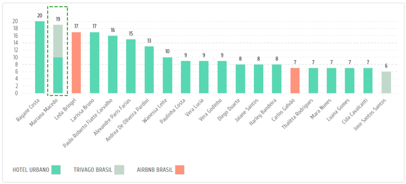Relatório mostra que, durante os últimos 30 dias, uma consumidora comentou/postou nas páginas concorrentes Hotel Urbano e Trivago Brasil.