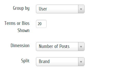 Em Variáveis, agrupe o gráfico por “Usuário” e a Divisão (Split) por “Marca”.