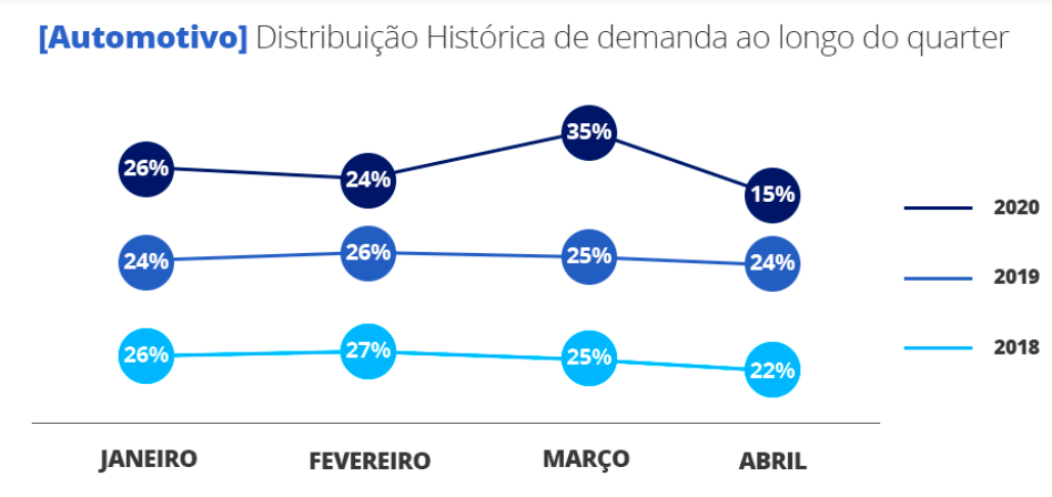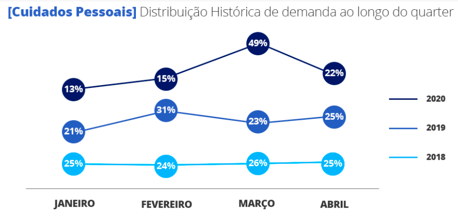 Passado o surto de estoque  dos produtos básicos e a regularização de fornecimento e consumo, as marcas de cuidados pessoais retomaram a regularidade das suas demandas de atendimento. O mesmo se deu com o setor automotivo com as flexibilizações de financiamentos e o fechamento das fábricas.