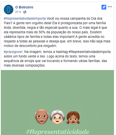 O Boticário se posicionou e no dia 30 de julho lançou o vídeo #RepresentatividadeImporta. Confira: