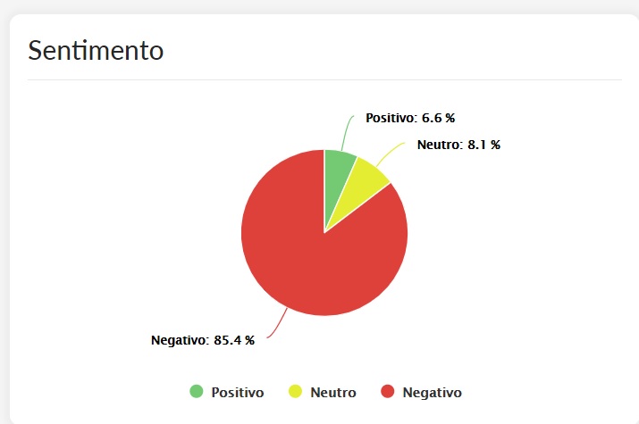 O que chama atenção em relação a esses números é justamente a classificação do sentimento dessas publicações, com índice alto de posts negativos (85,4%), como podemos ver no gráfico abaixo.