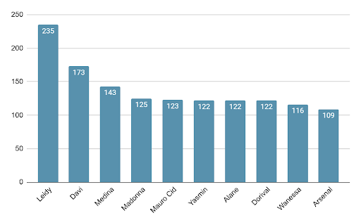 Ainda falando sobre jogadores, as performances de Philippe Coutinho também estiveram nos top 20 do ano, aparecendo 1.002 vezes na lista. O argentino Pablo Vegetti ficou com 984 ocorrências e Gerson esteve 863 vezes no ranking. Entre as equipes, o Botafogo liderou a presença nos TT’s do ano, com 1.072 aparições, seguido pelo Corinthians, com 1.053 e pelo Cruzeiro, com 954 ocorrências.