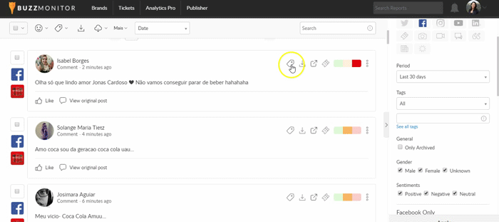 2. Eu perco muito tempo aplicando tags durante o monitoramento e gostaria de poder taguear o post original, não apenas as interações.