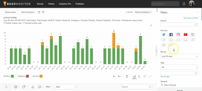 O Buzzmonitor mudou seu layout: agora está mais clean e interativo, permitindo que os analistas tenham seu trabalho otimizado com todas as novidades que acabam de chegar. O trabalho do profissional de Social Media agora poderá ser feito com muito mais facilidade!