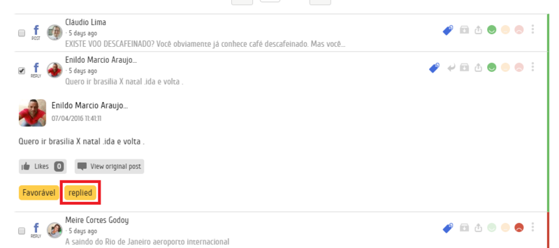 Ela funciona da seguinte forma: quando seu analista, ao responder o comentário de um usuário e/ou classificá-lo com uma tag qualquer, automaticamente aquela publicação também receberá a tag “Replied”.
