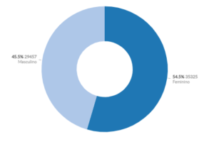 Entre as pessoas que falaram apenas sobre Panetone no Twitter, a diferença foi pouca entre homens e mulheres, sendo 54,5% dos usuários do gênero feminino e 45,5% masculino.