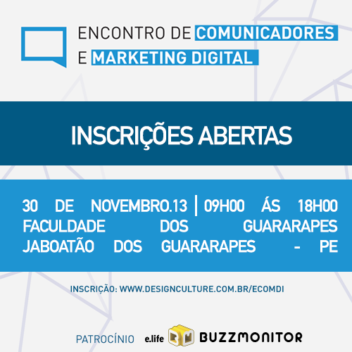 Vem aí o grande encontro de profissionais da área de comunicação que trabalham diretamente com economia criativa, gestão de marcas em mídias digitais, planejamento para novas mídias e tendências criativas. Quem mora em Jaboatão dos Guararapes, Recife, Olinda e região não pode perder o Encontro de Comunicadores e Marketing Digital organizado pela equipe do blog Design Culture.