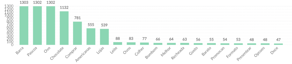 Veja no dashboard os termos mais presentes sobre cada marca: https://app.buzzmonitor.com.br/dashboards/pascoa2022