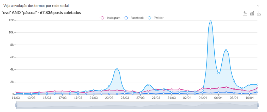 Volume de posts que mencionam “ovo” AND “páscoa” – Período 11/03 a 11/04
