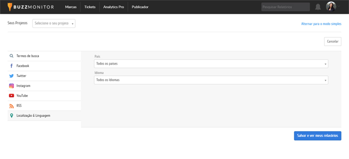 - Depois em Location & Language escolha o país e o idioma a serem monitorados.