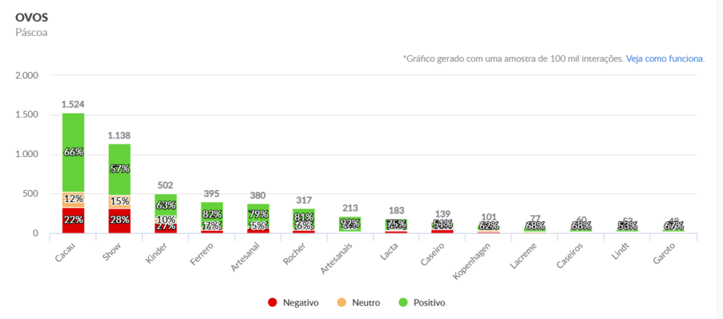 Nas conversas sobre ovos, marcas tradicionais disputam espaço com produtos artesanais. Embora marcas como Cacau Show, Kinder e Ferrero despertem mais relatos, os produtos artesanais ganharam um espaço que não tinham nos anos anteriores.