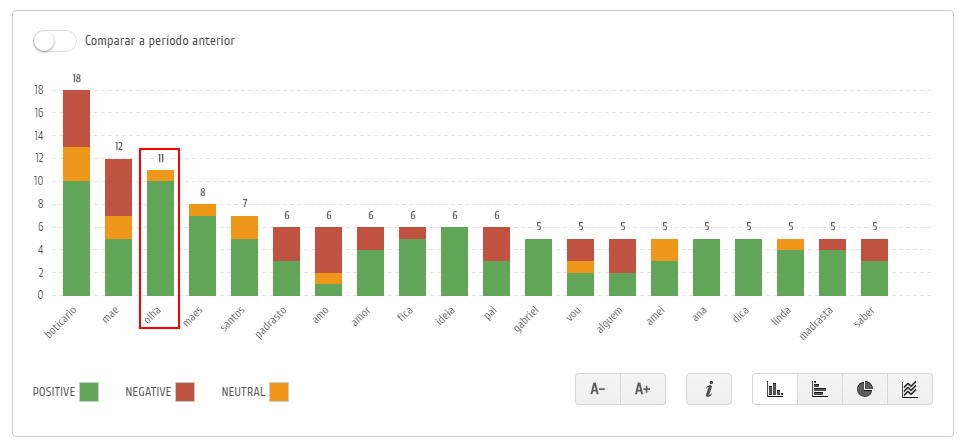 Entre os termos mais citados nos comentários, 90% das menções positivas estão relacionadas ao termo “olha”: a palavra normalmente é usada quando um consumidor quer compartilhar com sua rede alguma informação. O termo é fundamental para estimar se uma campanha tem potencial de viralização. Veja aqui o que um simples “olha” nos seus comentários pode significar para sua marca.