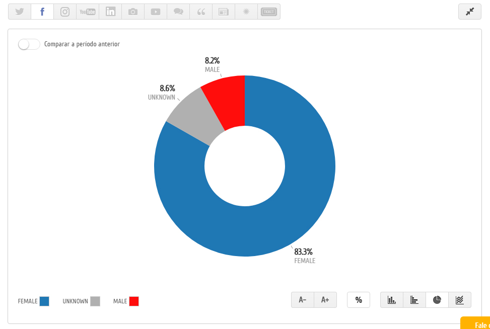 Na campanha do Boticário, verificamos que 83% dos internautas eram mulheres, enquanto 8% eram homens. O restante dos usuários (8%)  não especificaram o gênero no momento de cadastro da conta na rede social.