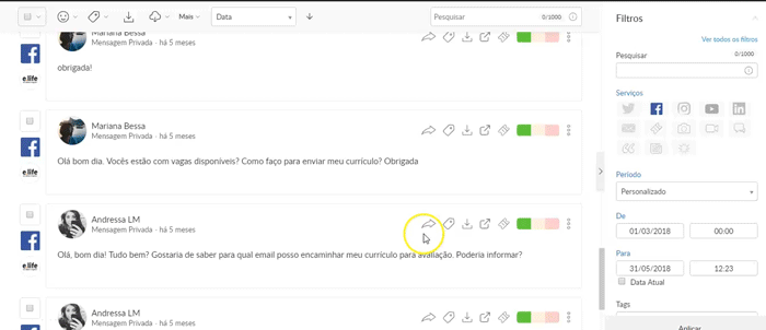 – Criar um alerta via e-mail sobre aquela interação (importante durante crises);