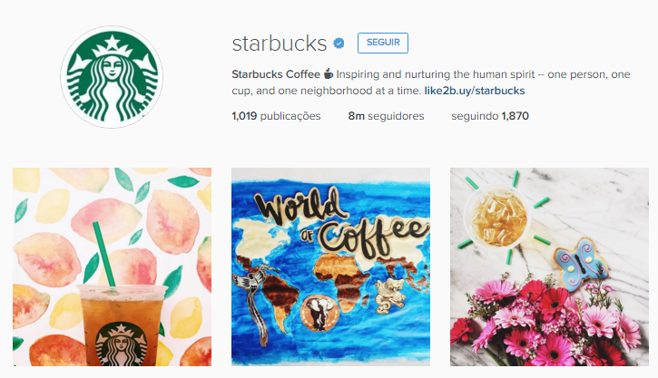 A marca mais famosa de cafeterias também promove concursos no seu perfil no Instagram e publica fotos dos seus copos emblemáticos em diferentes lugares e contextos.