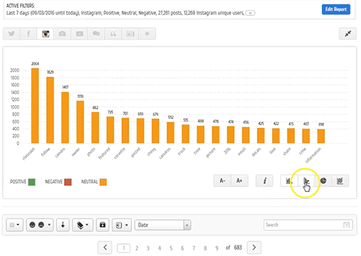 Por fim, clique em “Apply” e você terá um relatório com as palavras mais usadas dentro das menções no Instagram sobre a sua marca ou com os termos monitorados.