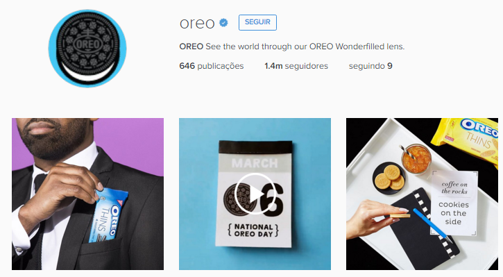 Outra marca inspiradora no Instagram é a Oreo. A empresa tem utilizado a rede social para promover curiosos vídeos sobre diferentes maneiras de comer os famosos biscoitos. Esses pequenos vídeos, que necessitam de pouca produção, têm gerado uma grande quantidade de engajamento.
