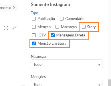 • Menções dos Stories – Caso um usuário mencione o perfil da marca nos stories é possível coletar e responder a esta menção.