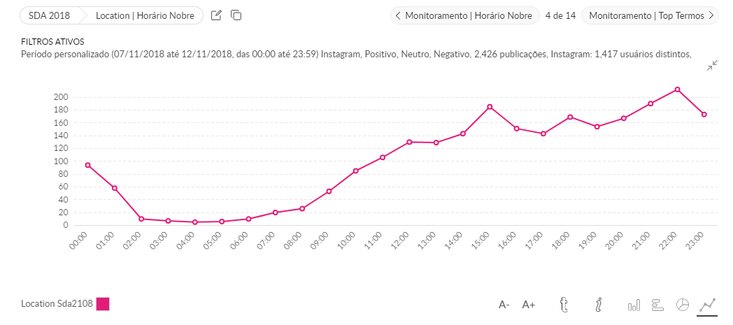 Apenas com a geolocalização é possível acompanhar os horários com mais buzz naquele local.