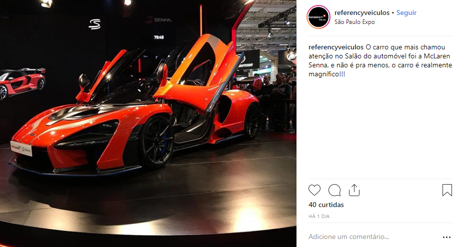 Porém, na location nenhuma marca automobilística apareceu entre os 10 principais termos das publicações. Porém, a presença do termo “Senna” merece destaque. As postagens mencionam homenagens a Ayrton Senna durante o evento e também o carro McLaren Senna, um dos destaques do Salão do Automóvel.