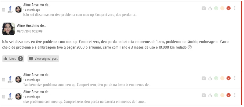 A ideia que propomos é a filtragem dos termos mais relacionados a advocacia positiva ou negativa da marca. Desta forma o analista de social media poderá rapidamente encontrar os depoimentos prioritários para responder.