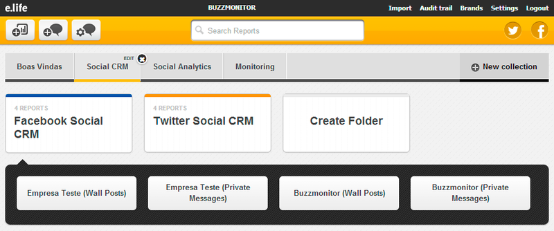 No módulo Social CRM, acesse a pasta do Facebook ou Twitter que deseja atender.