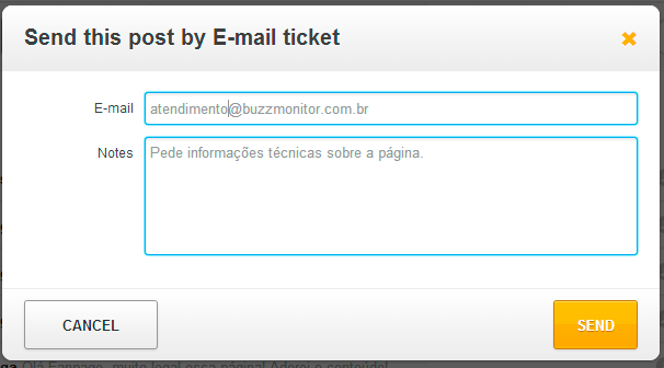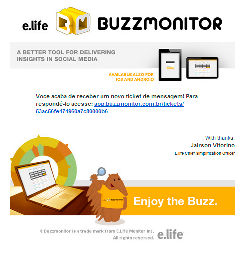 Quando o ticket for respondido, na sua página do Buzzmonitor aparecerá uma notificação: