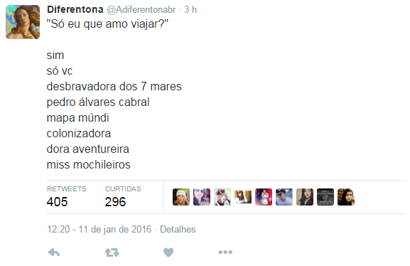 Não demorou para que esse se tornasse o primeiro grande meme do ano, afinal, o perfil da Diferentona já recebeu mais de 3.800 curtidas no Twitter. No Facebook, obteve mais de 680 mil curtidas.