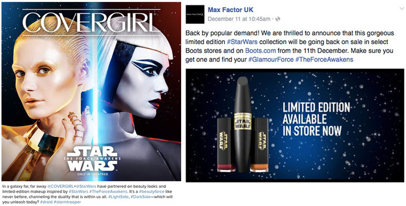 Além destas marcas, a Disney juntou-se a inúmeras outras e trabalhou com influenciadores locais para diversas campanhas e promoções. De fato, é muito difícil fazer compras de Natal sem tropeçar nos mais variados produtos com o branding Star Wars: desde o verniz de unhas até ao computador portátil da “Dark force”, ou, mesmo nos supermercados, a variedade incontornável de cereais ou salsichas com Stormtroopers!