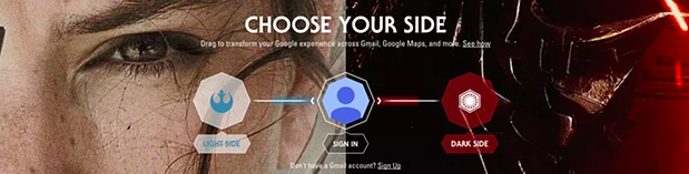 A um mês da estreia, a Google criou uma página dedicada aos seguidores da saga. Os usuários podem personalizar a aparência de uma série de aplicativos, escolhendo entre o lado da luz ou negro da força – optando por um ambiente Jedi ou Sith.