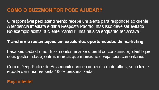 Normalmente, reclamações são feitas com mau humor e impaciência, mas o atendimento pode aproveitar casos em que o tema é tratado com bom humor. Para reverter a situação, a marca pode tornar aquela menção negativa em marketing positivo.