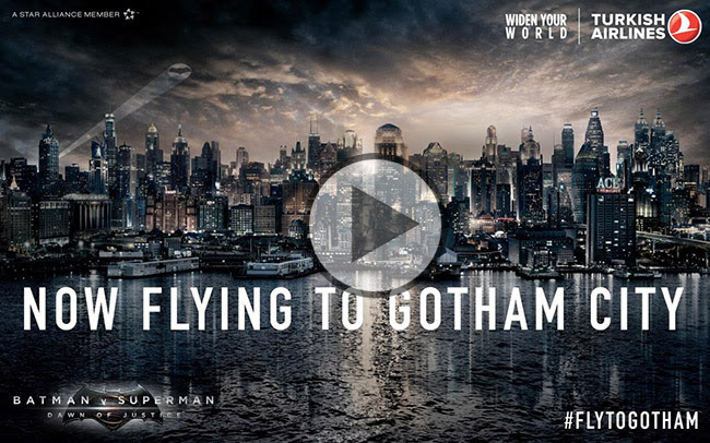A Turkish Airlines é uma das companhias mais inovadoras em suas ações de marketing. Em sua última campanha, a empresa decidiu se tornar a única capaz de levar seus consumidores a dois destinos fictícios: Gotham City e Metrópolis. A ação foi parte da parceria com o filme Batman Vs Superman: o amanhecer da justiça.