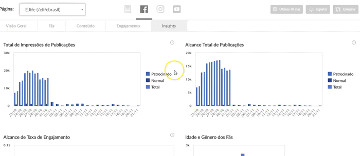 Obs! Para visualizar a aba de Insights é necessário que a página esteja associada a alguma das contas de Facebook sincronizadas no Buzzmonitor e que você seja administrador da página.