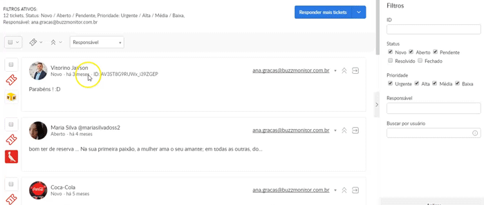 Agora o status, a prioridade e o responsável dos tickets podem ser alterados em massa, de forma que não é preciso mais perder tempo alterando essas informações ticket por ticket. Além disso, também é possível alterar o responsável e a prioridade de um ticket sem precisar abri-lo, o que poupa tempo útil do analista. E os filtros agora também são exibidos na lateral da página, como já acontece com relatórios. Todas as informações ao alcance de seus olhos, tudo em um só lugar!