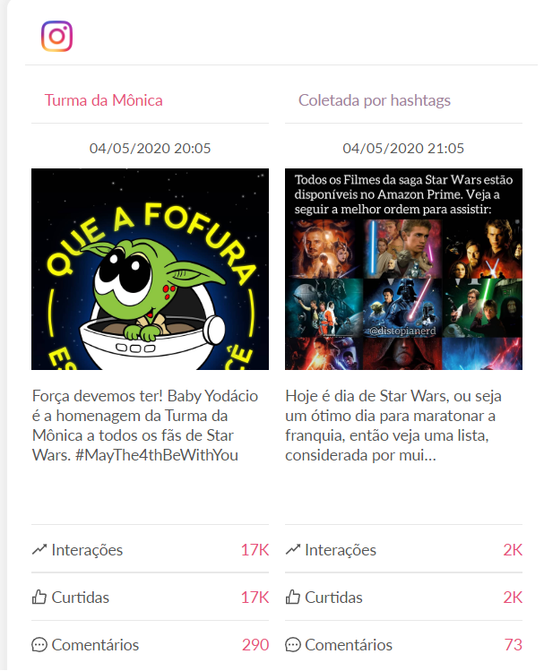 O Twitter com 58,54% do volume de buzz foi a rede social mais movimentada sobre tema, com as hashtags #maytheforcebewithyou e #starwarsday praticamente dominando o dia todo nos trending topics. Em seguida aparece o Instagram com 32,11% do buzz, seguido pelo Facebook com 9,35% das publicações analisadas.