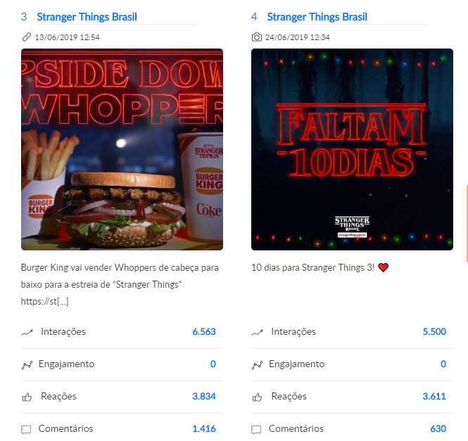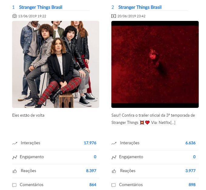 Top posts do StrangerThings Brasil no Facebook geraram mais de 35.000 interações