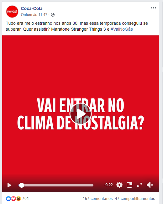 Um dos principais posts sobre a série feito por perfil de patrocinador foi da Coca Cola Brasil. A publicação foi feita no dia de estreia da 3ª temporada e teve mais de 700 curtidas.