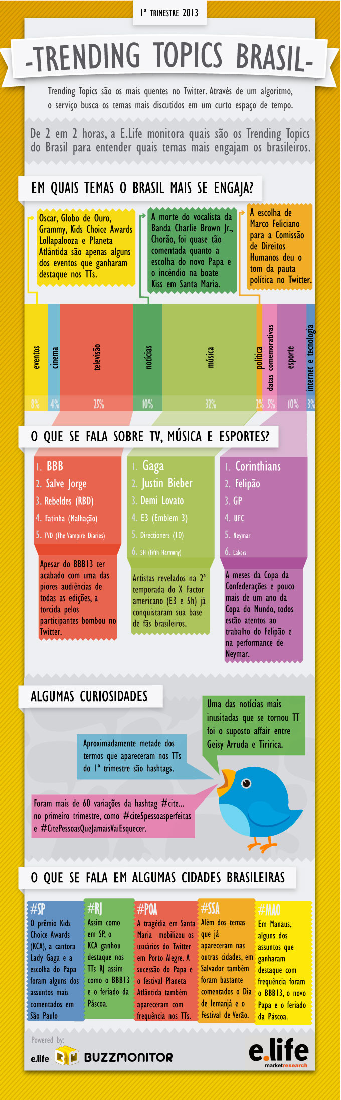 Postado em Monitoramento, Social News Por Thamires OliveiraPostado em 14 de abril de 201318 de março de 2024Marcado Monitoramento Redes Sociais Infográfico: Trending Tropics Brasil 2013 Related posts:Buzz da Copa do Mundo: Neymar, Pedro e Richarlison são os jogadores mais comentados nas redes sociai...Quais temas engajam mais no Dia dos Namorados - veja os posts de 2021 para ajudar sua estratégia em ...Retrospectiva Buzzmonitor 2016: os assuntos mais discutidos do anoTrending Tropics Brasil 2013