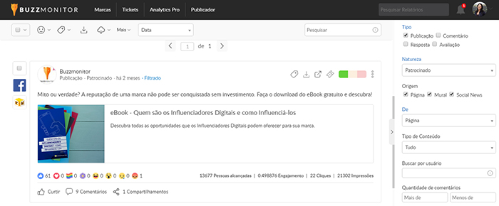 Quando você cadastra sua marca no Buzzmonitor, automaticamente todas as suas publicações serão coletadas no monitoramento. Como então diferenciar aquilo que é orgânico do que é patrocinado?