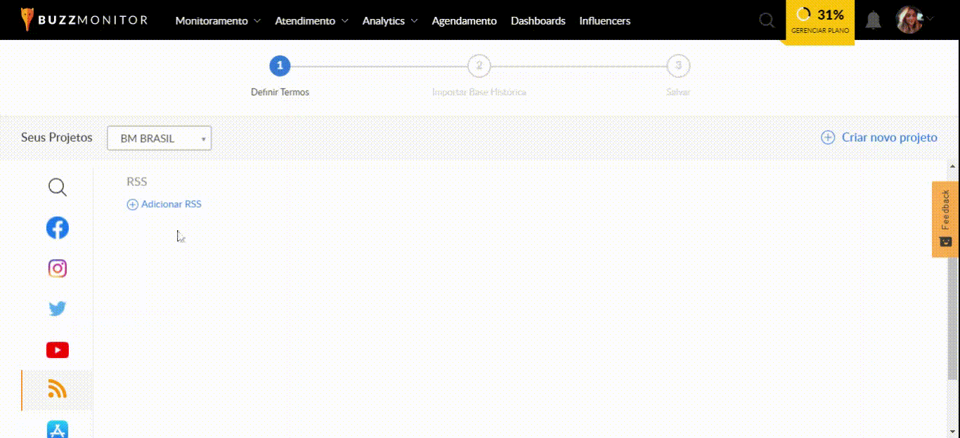 O Buzzmonitor possui um banco de dados com centenas de milhares de blogs e fóruns que possuem RSS e, se algum destes sites citar uma das palavras-chave que esteja cadastrada em termos de buscas através dos termos booleanos padrão, ela será coletada.
