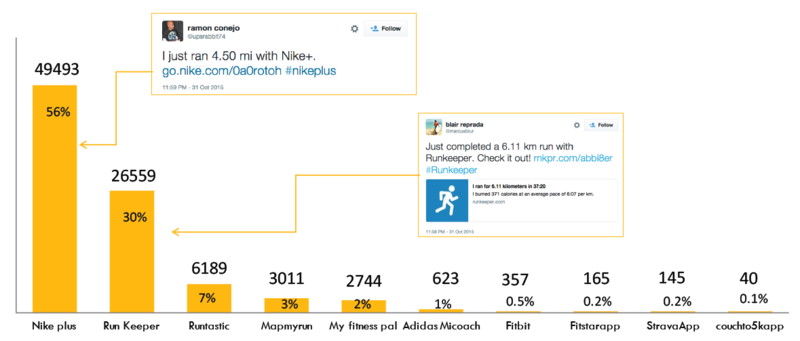 Em nosso mais recente estudo com o Buzzmonitor, monitoramos publicações automáticas no Twitter feitas através de aplicativos fitness durante o mês de novembro. Os tweets foram gerados pelos aplicativos Nike+, Runkeeper, Runtastic, Mapmyrun, My fitness pal, Adidas Micoach, Fitbit, Fitstarapp, StravaApp e couchto5kapp, cuja amostra final foi de 88,619 tweets.