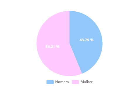 As mulheres tiveram 56.21% de presença nos posts, já os homens 43.79%.
