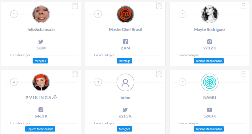 Pesquisamos no módulo influenciadores do Buzzmonitor os termos “vegano OR vegana” e os influenciadores mais engajados foram: