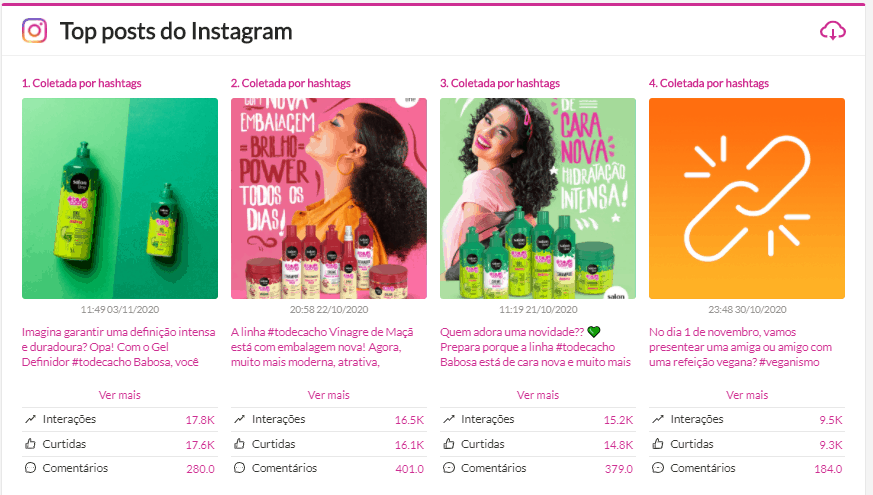 Dos quatro primeiros top posts, três deles falam sobre produtos de higiene/beleza.