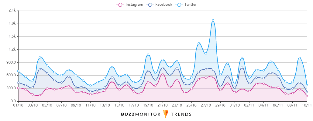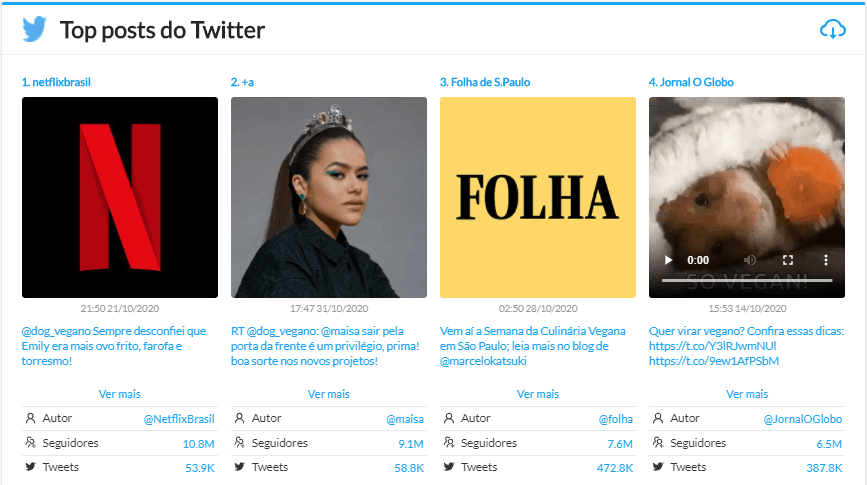Para saber a repercussão desse tema em 2020, monitoramos os termos “vegano OR vegana” de 01 de outubro até 10 de novembro de 2020 em Português.