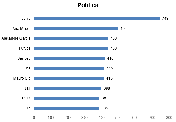 A primeira-dama Janja dominou as discussões políticas após sua participação no desfile de 7 de setembro e pelo anúncio de medidas para combater as fortes chuvas no Rio Grande do Sul. Além disso, sua decisão de evitar manifestantes bolsonaristas durante o evento gerou críticas, tornando-se um tema amplamente comentado.