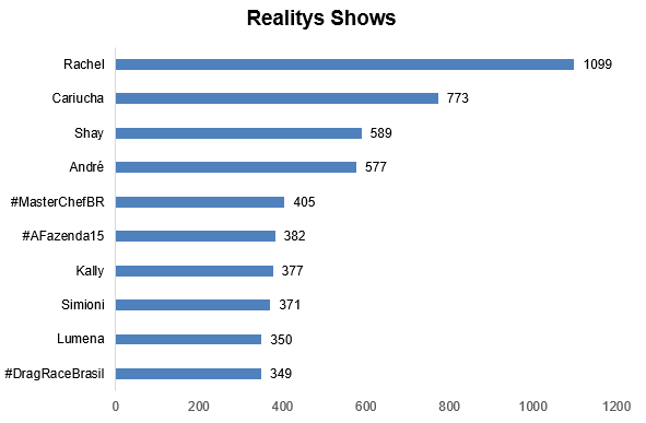 A categoria de Realitys Shows conquistou 7% do buzz, sendo a maioria esmagadora devido à estreia de A Fazenda.