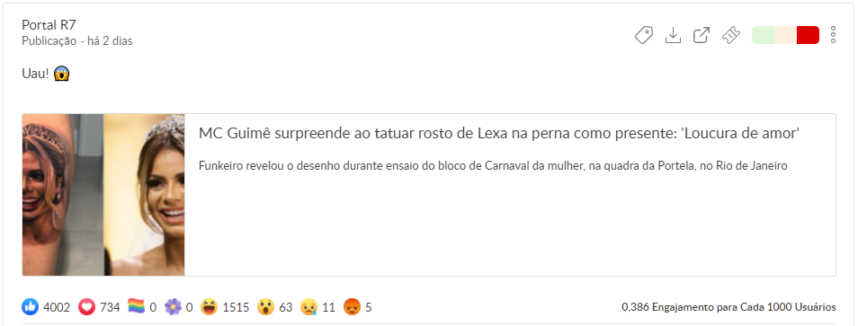 Através do Social News do Buzzmonitor, descobrimos os posts com mais reações amei, grr (ódio) e uau em relação ao Carnaval.