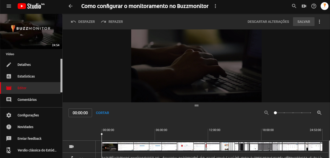 Para canais que você é o administrador, é possível monitorar e coletar vídeos e comentários, assim como usar o Analytics.