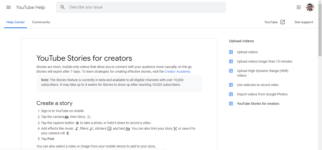 - Função Stories: De forma semelhante ao Instagram e WhatsApp, o YouTube também está apostando no formato stories. Ainda em versão beta, a função só está disponível para canais com 10 mil inscritos e já permite a menção a outros canais e a publicação pelo App apenas deslizando a tela inicial para a direita.